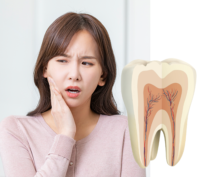 충치가 심하게 진행되어 신경(치수)까지 손상되면 신경 조직에